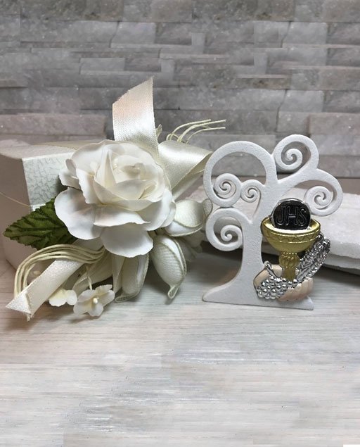 Albero della vita bomboniera prima comunione, realizzato in gres resinato bianco.