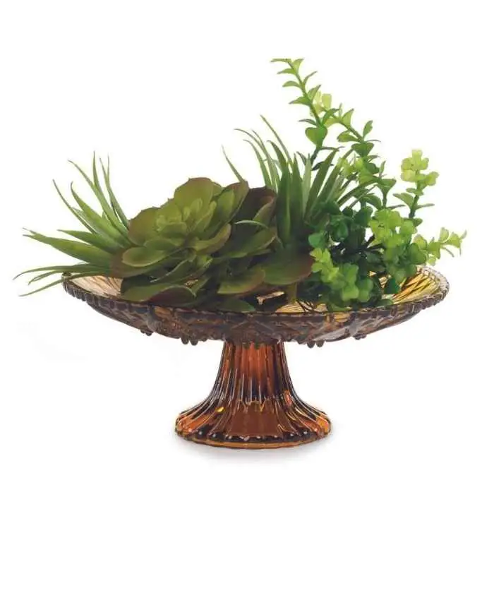 Alzatina di Vetro con decori diametro 25 alta 13 cm – Ambra Scuro
