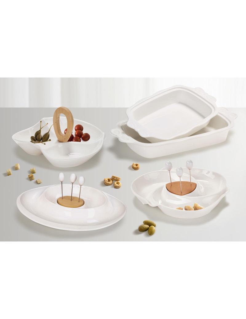 ANTIPASTIERA GIRELLA PORCELLANA e BAMBOO CON 4 FORCHETTINE