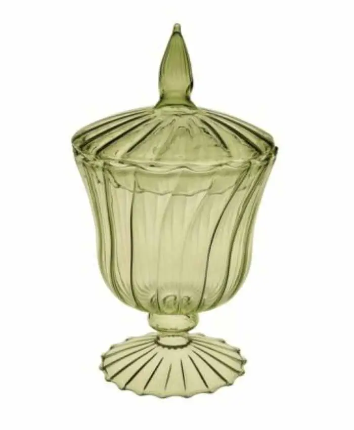 Bomboniera in vetro colorato sagomato con tappo alta 25 cm Oliva