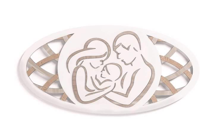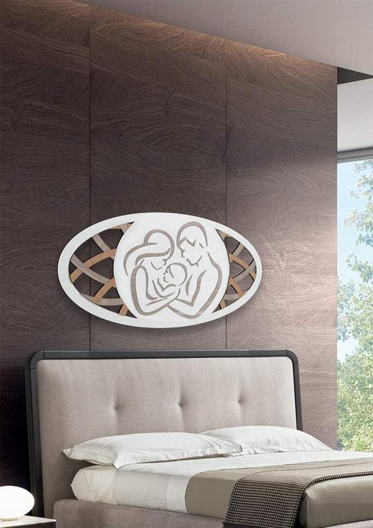Capoletto Sacra Famiglia di forma ovale e dalla linea moderna, perfetto per essere nella propria camera da letto arredando la parete.