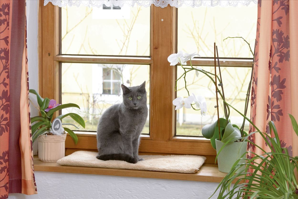 Superficie autoriscaldante, riflette il calore corporeo del gatto e respinge il freddo proveniente dal davanzale • lato inferiore rivestito di gomma a bolli