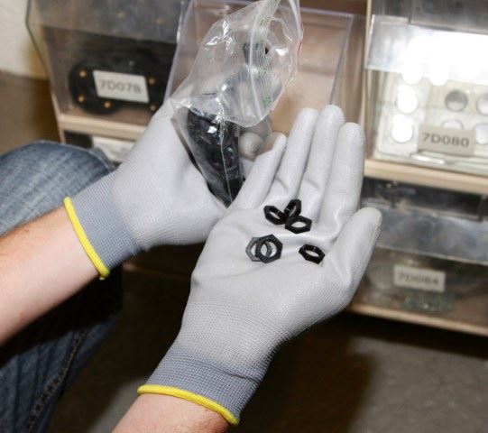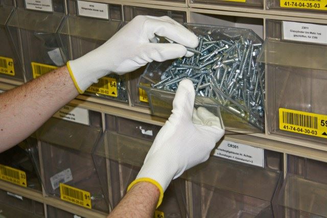 • guanto senza cuciture in maglia fine (gauge 13) con rivestimento in PU