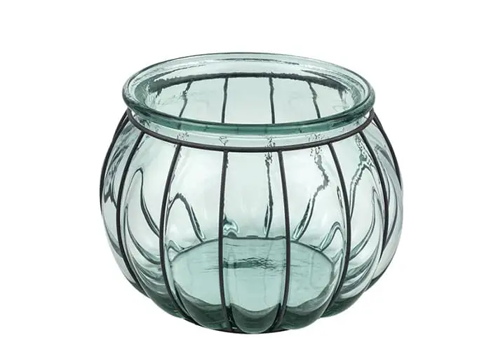 Lanterna vetro colorato con gabbia e manico metallo cm 26 h18