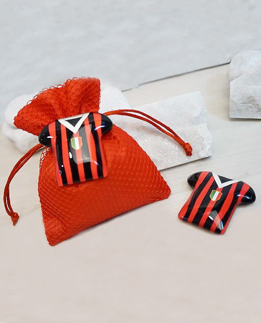 Bomboniera magnete maglia rossonera realizzata in resina. Un vero tifoso non rinuncia mai i colori della propria maglia.