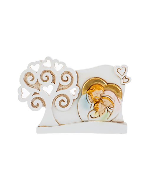 Magnete Albero della vita Sacra Famiglia realizzato in resina color tortora e bianco a forma di albero della vita. Perfetti per bomboniere battesimobomboniere sacre comunione o come bomboniere religiose da regalare ai tuoi cari.
