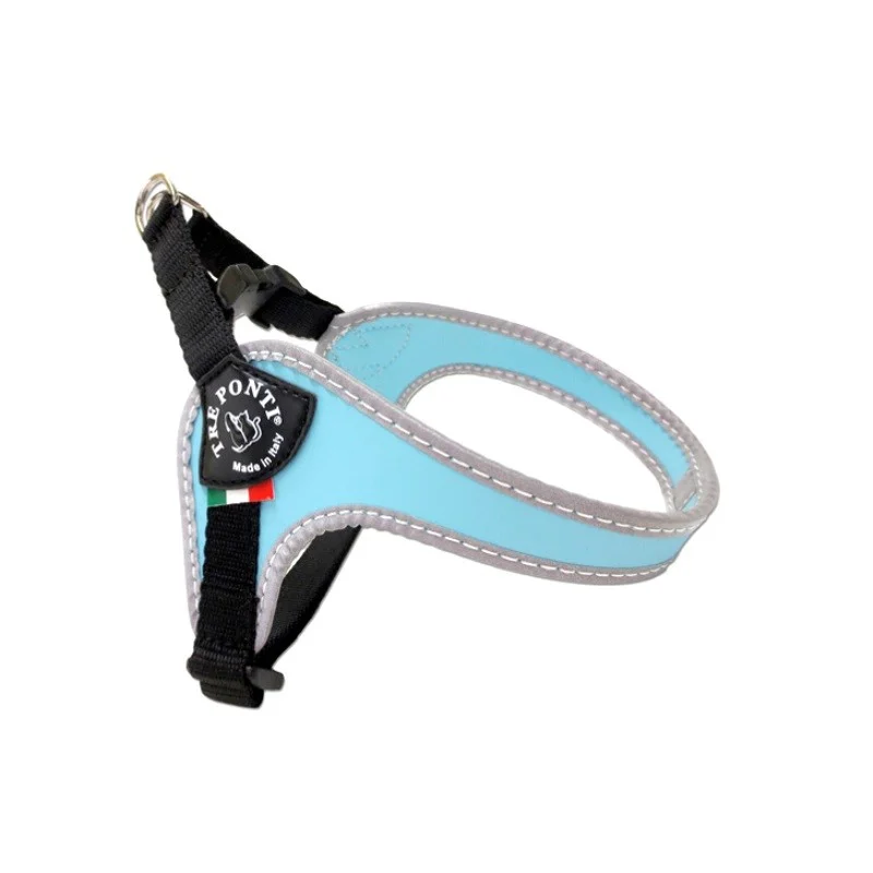 Caratteristiche: Pettorina caratterizzata da un comodo sottopancia regolabile che la rende adattabile ad ogni tipologia di corporatura, dal design unico e ricercato, facile da mettere da togliere, materiale anallergico, impermeabile, resistente e made in Italy.