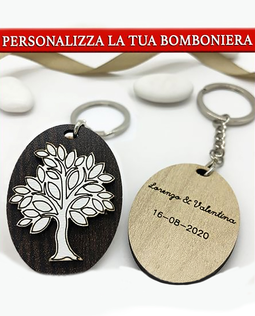Portachiavi Albero della vita personalizzato, realizzato in legno, decorato da un bel albero della vita, simbolo portafortuna. Una bomboniera originale.