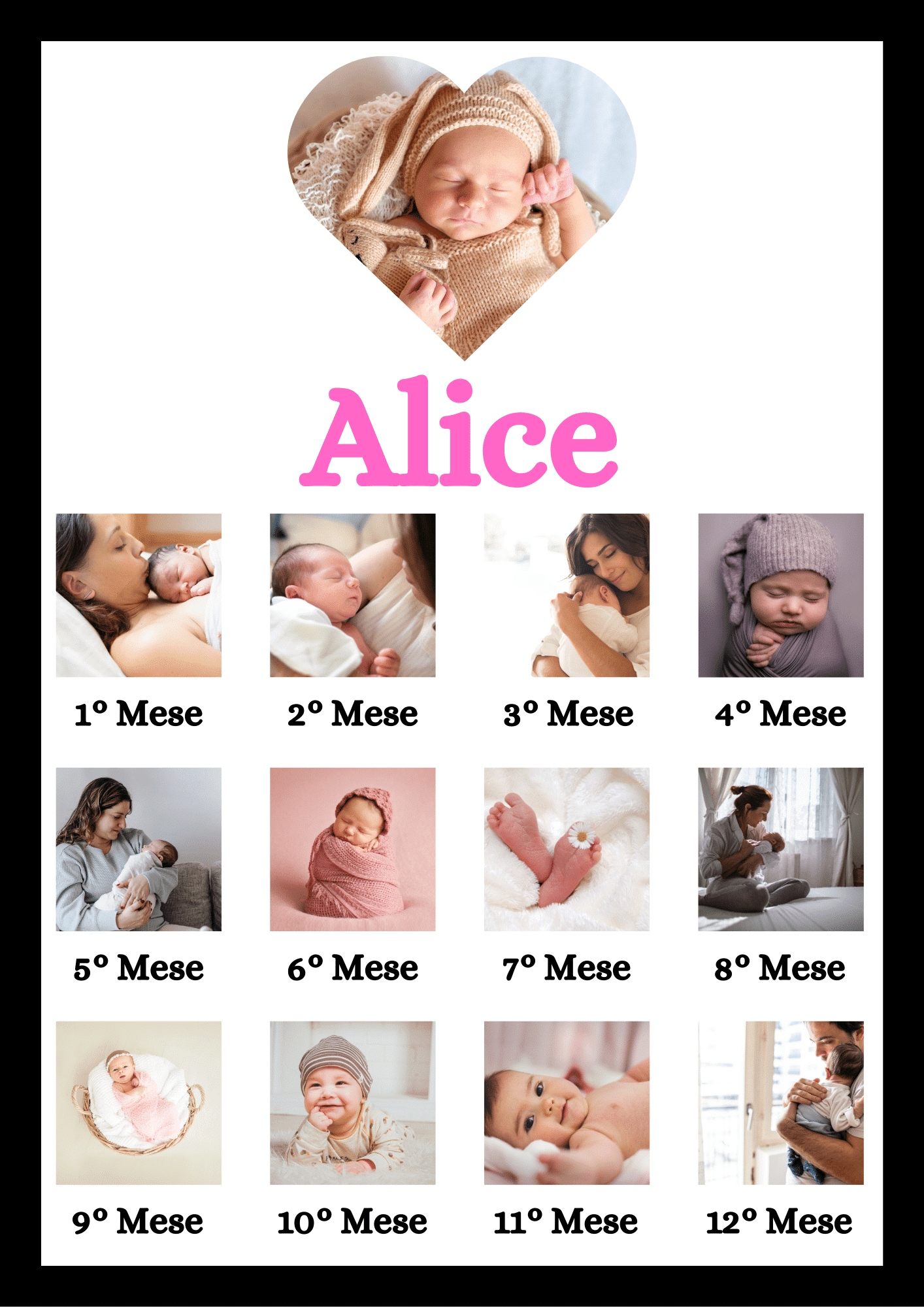 Crea un ricordo unico e indimenticabile per celebrare l’arrivo del tuo bambino con il poster personalizzato “Neonato”. Questo prodotto ti permette di progettare un poster completamente su misura, che racconta i primi momenti di vita del neonato. Puoi scegliere tra diversi layout predefiniti e personalizzarli direttamente online, aggiungendo foto speciali, il nome del bambino, la data di nascita, il peso alla nascita e ogni altro dettaglio che desideri. È l’idea perfetta per commemorare un evento così importante con stile e creatività.