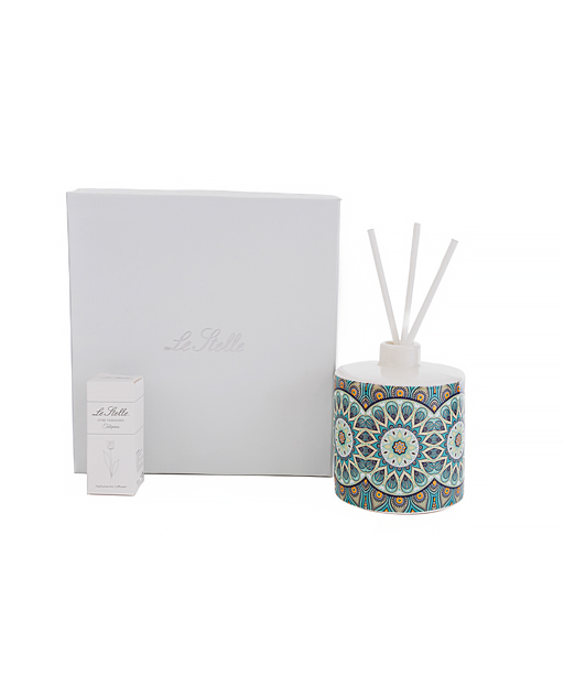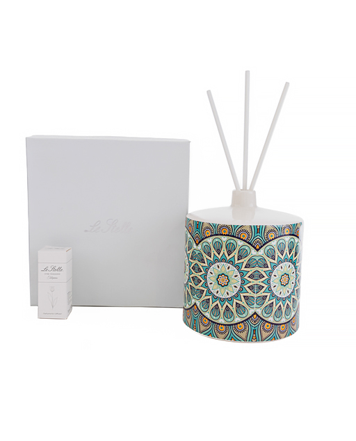 Profumatore Cashmare tondo decorato in stile maiolica. Nuova collezione 2023. ideale come Bomboniera utile matrimonio. Una bomboniera bella ed utile dallo stile unico per mantenere vivo negli invitati il ricordo del giorno più importante della vostra vita. Disponibile in due misure: