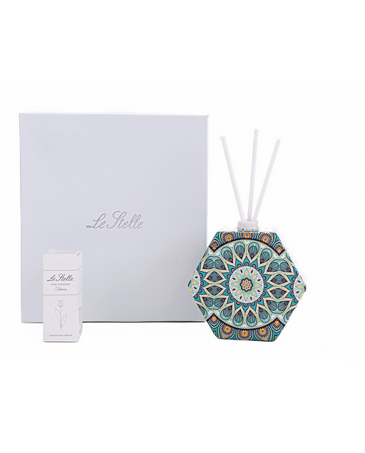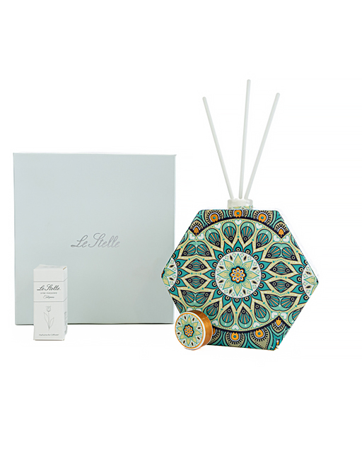 Profumatore esagonale cashmare decorato in stile maiolica. Nuova collezione 2023. ideale come Bomboniera utile matrimonio. Una bomboniera bella ed utile dallo stile unico per mantenere vivo negli invitati il ricordo del giorno più importante della vostra vita. Disponibile in tre misure: