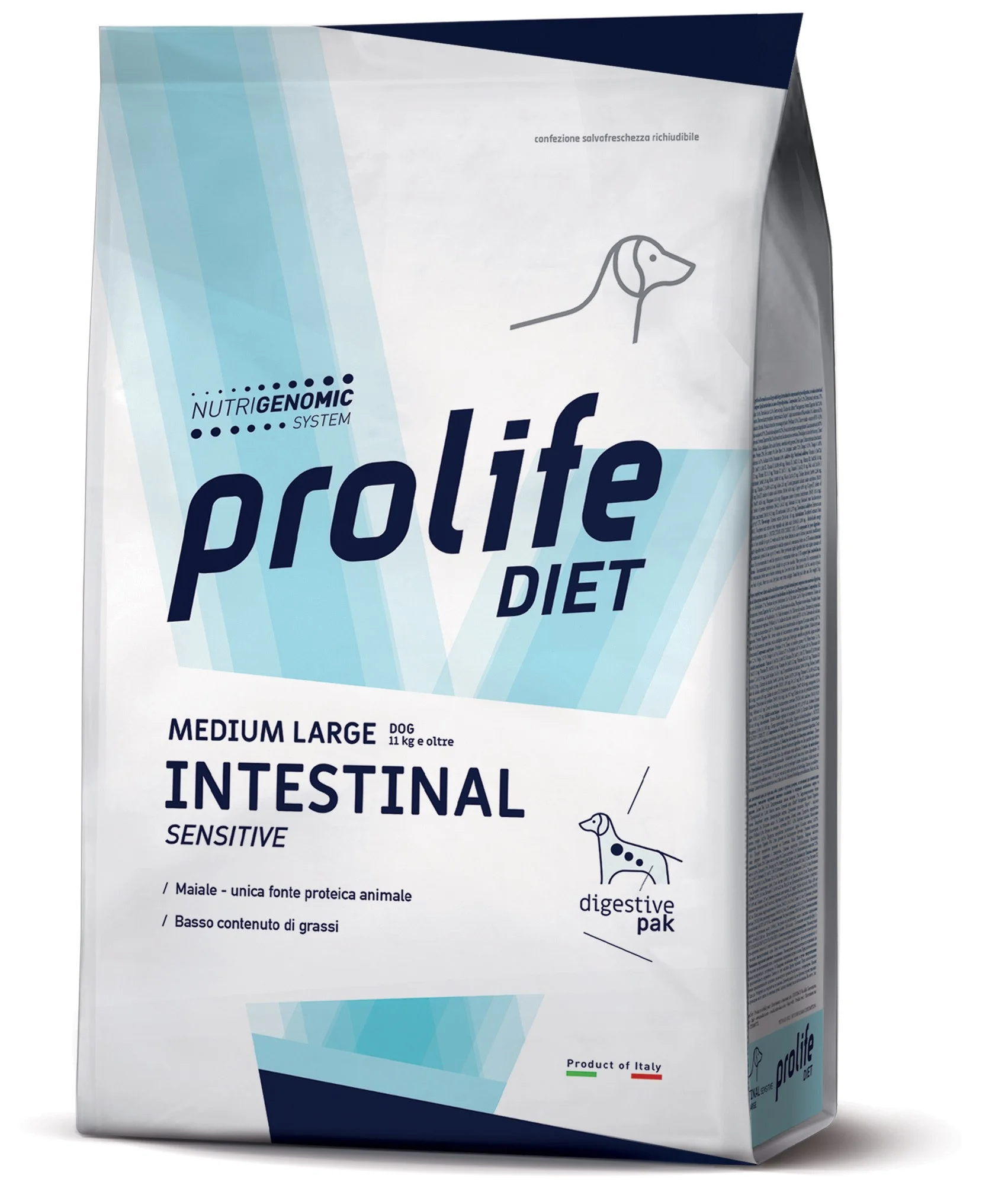 Prolife Intestinal è l’alimento completo dietetico studiato per il cane che presenta patologie gastrointestinali. Grazie a ingredienti altamente digeribili, ai prebiotici FOS e all’accresciuto livello di elettroliti, aiuta a regolarizzare il transito intestinale e a migliorare l’assorbimento dei nutrienti. L’elevata appetibilità del pollo fresco, unita a un’alta concentrazione energetica, permette di coprire i fabbisogni del cane senza sovraccaricare eccessivamente l’apparato digerente.