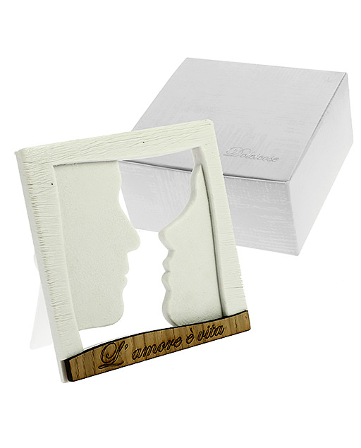 Bomboniera quadretto d’appoggio L′AMORE E′ VITA” un complemento d’arredo perfetto per personalizzare con originalità la vostra stanza o qualsiasi altro ambiente della casa raffigurante due profili sposi. Può essere comodamente appoggiato a mensole e scrivanie. Nuova collezione 2020.