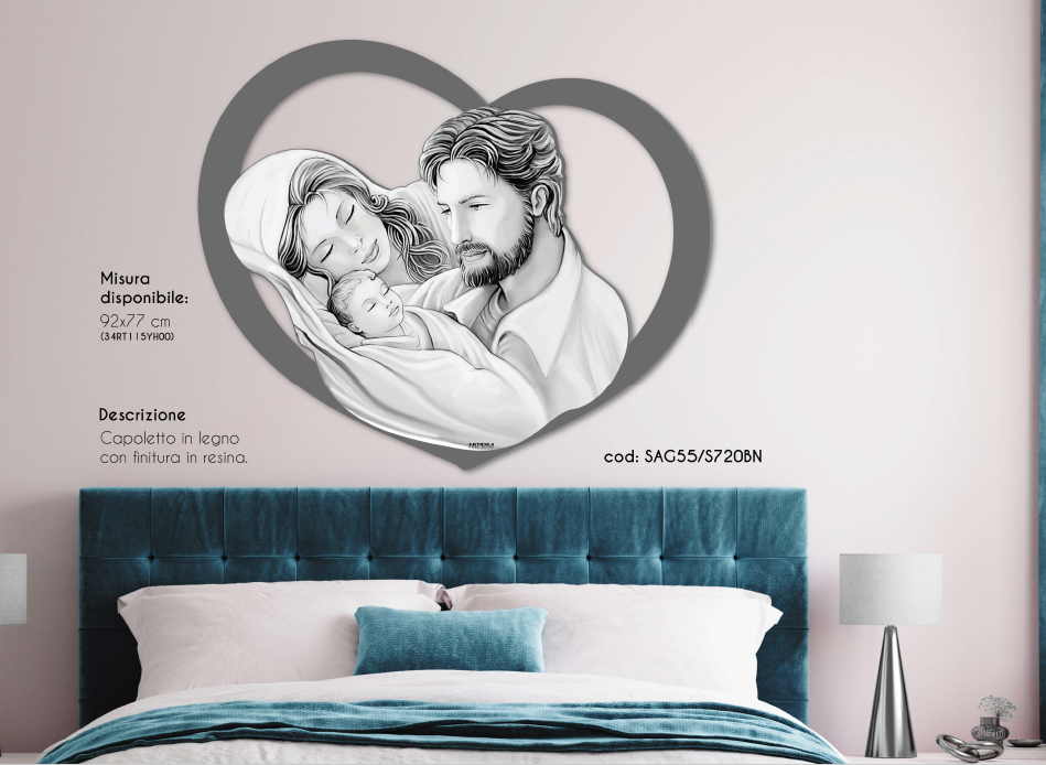 Capoletto in legno laccato a mano con vernice antigraffio. Finiture in resina lucida, pietre colorate e pennellate tono su tono.