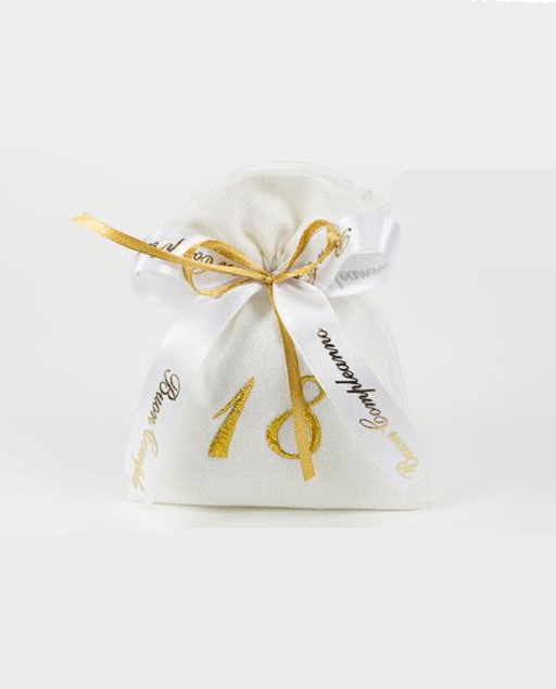 Simpatico sacchetto 18 anni. Sacchettino con numero 18 ricamato color oro.