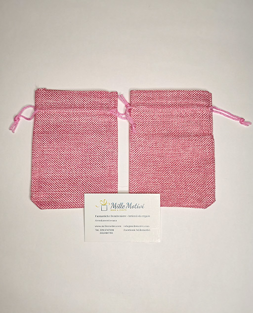 Sacchetto con tirante realizzato in juta rosa, ideale per realizzare con semplicità e creatività.