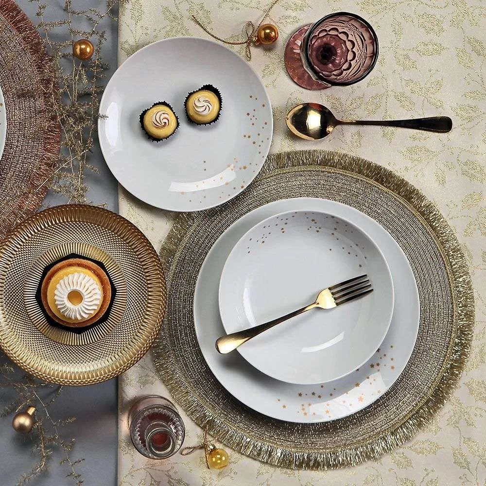 Il servizio di posate Golden è composto da 24 pezzi, per un totale di 6 coperti completi: 6 cucchiai da tavola, 6 forchette, 6 coltelli e 6 cucchiaini da caffè. Ogni posata è resistente e di alta qualità, in acciaio inox in color oro, che conferisce raffinatezza ed eleganza a questo set. Adatto per le occasioni speciali, questo servizio posate stupirà i suoi ospiti.