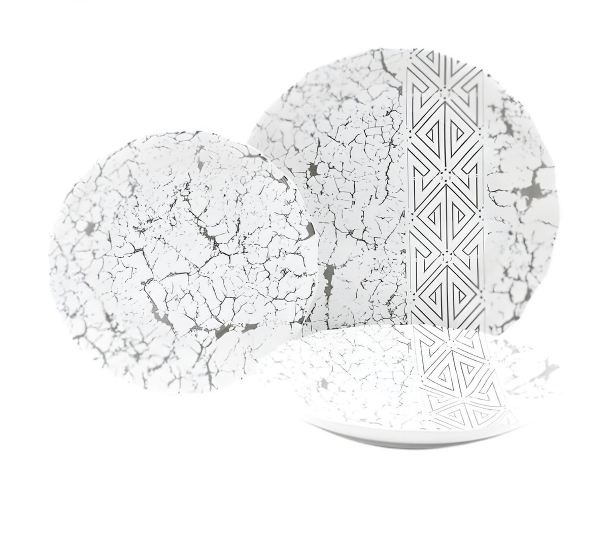 Il Set Piatti 18pz Marmo Grigio è un’ode all’arte e all’eleganza per la tua tavola, perfetto per cene formali o per un tocco di classe quotidiano, è ideale per chi cerca una qualità duratura e un’estetica senza tempo.