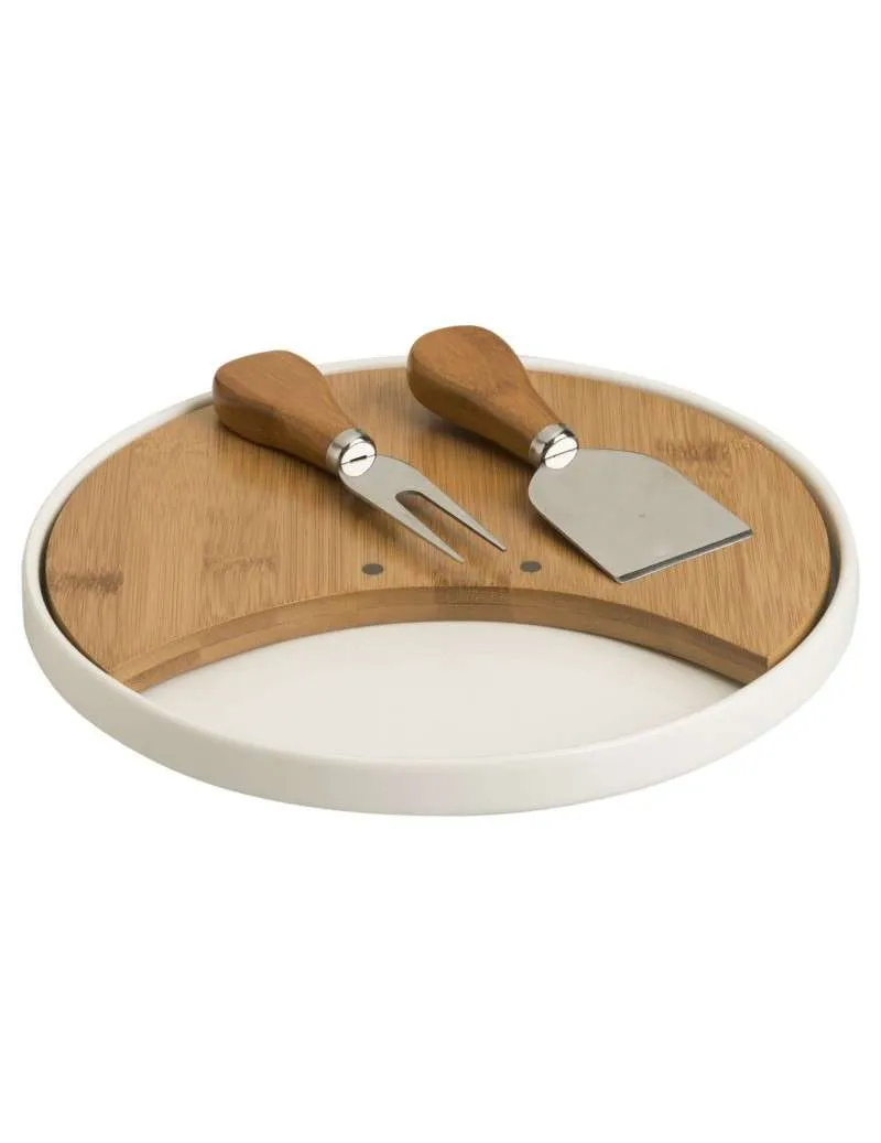 Il nuovo tagliere Brandani, dalla classica forma rotonda è un sorprendente due in uno: il raffinato vassoio in porcellana racchiude infatti un robusto ed estraibile tagliere in bamboo, la cui particolare forma lascia al suo fianco un comodo spazio vuoto dalle più svariate utilità. Dotato di due pratici strumenti per il taglio del formaggio, il tagliere porcellana e bamboo sarà il protagonista indiscusso della tua tavola, tra i plausi dei commensali e l’orgoglio del padrone di casa.