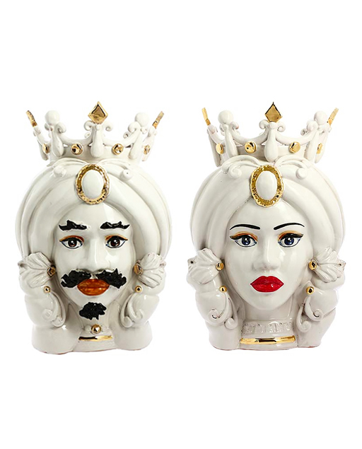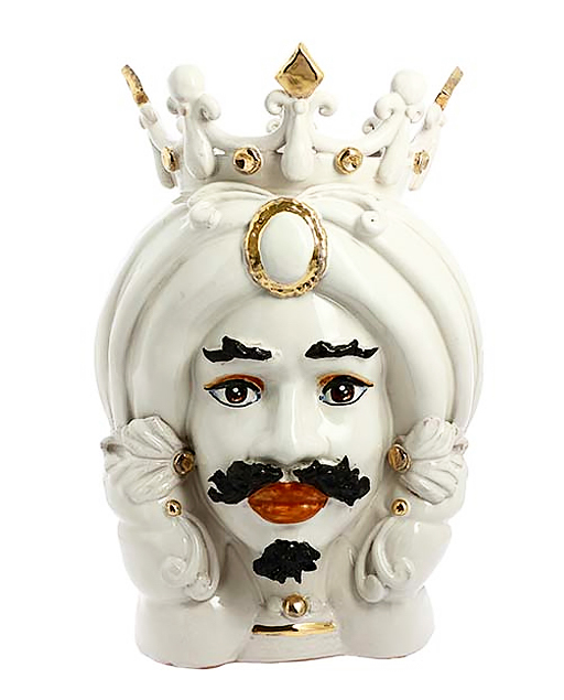 Testa di moro con corona realizzata in ceramica decorata dipinta a mano. Disponile Uomo e Donna. Il prezzo è riferito ad una singola Testa di moro.