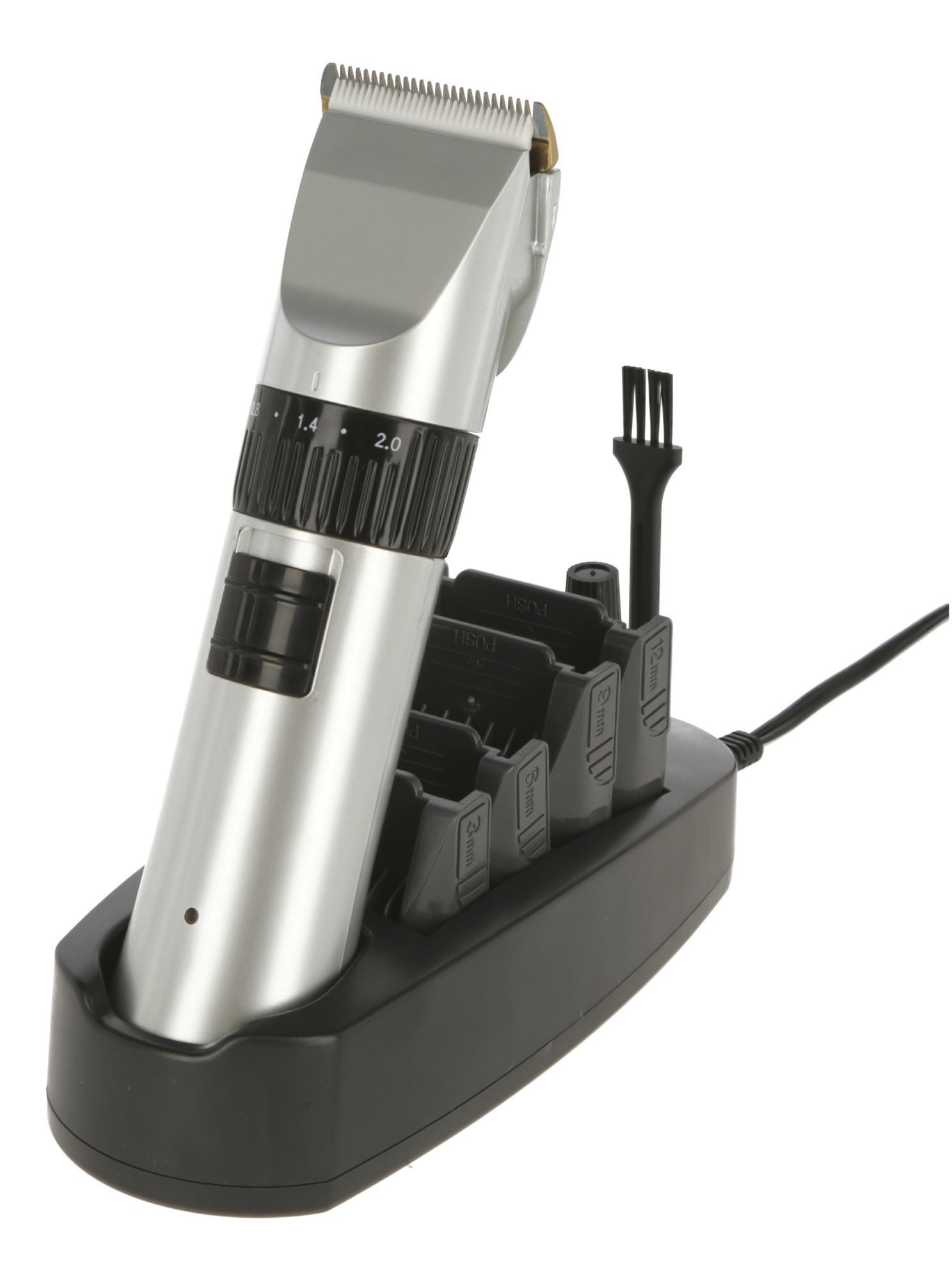 Eccellenti caratteristiche di tosatura grazie alla testina in ceramica • batteria duratura per lavori lunghi • incl. tanti accessori con 4 pettini per lunghezza di taglio di 3, 6, 9 e 12 mm • Regolazione dell‘altezza di taglio: 5 livelli regolabile mediante rotella