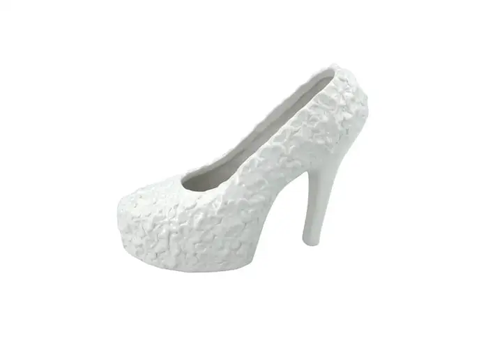Vasetto ceramica a forma di scarpa tacco 12 (Bianco satinato)