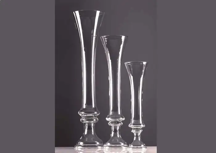 Il Vaso alto vetro piede lavorato diametro 17 altezza 60 cm che vedi in questa pagina è particolarmente indicato per ambienti dallo stile classico e prestigioso. Questo modello è attualmente presente nel nostro ingrosso di vasi in vetro in 3 altezze diverse e il modello di questa pagina è il più piccolo della serie.