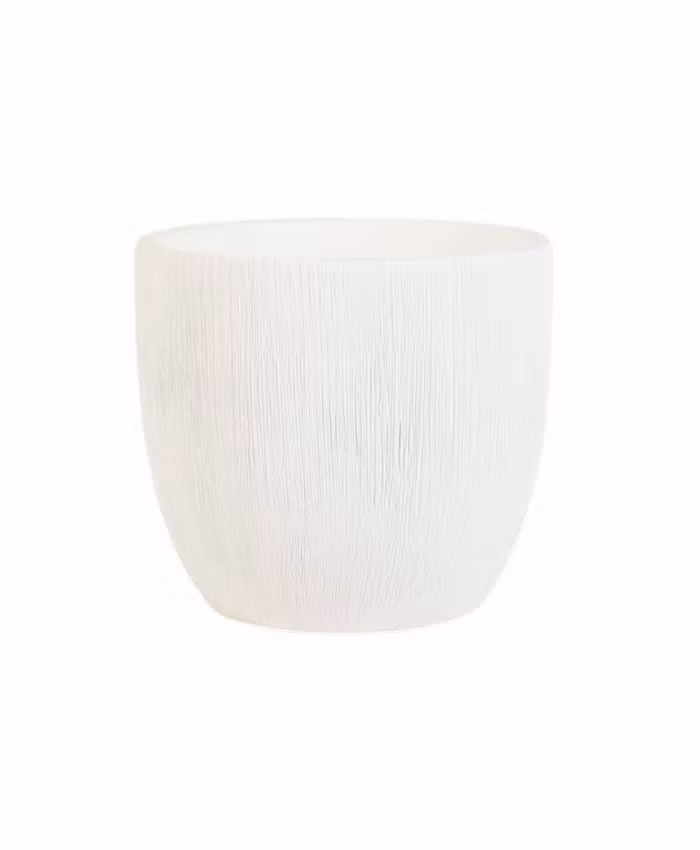 Vaso in ceramica dall’aspetto elegante di colore bianco con superficie zigrinata diametro 10 cm