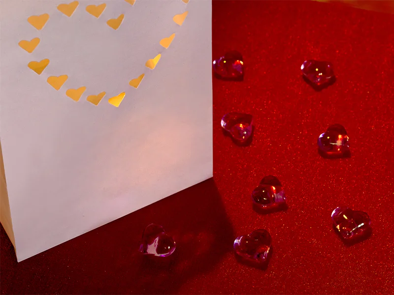 • Materiale: Carta bianca non infiammabile con motivo a cuori